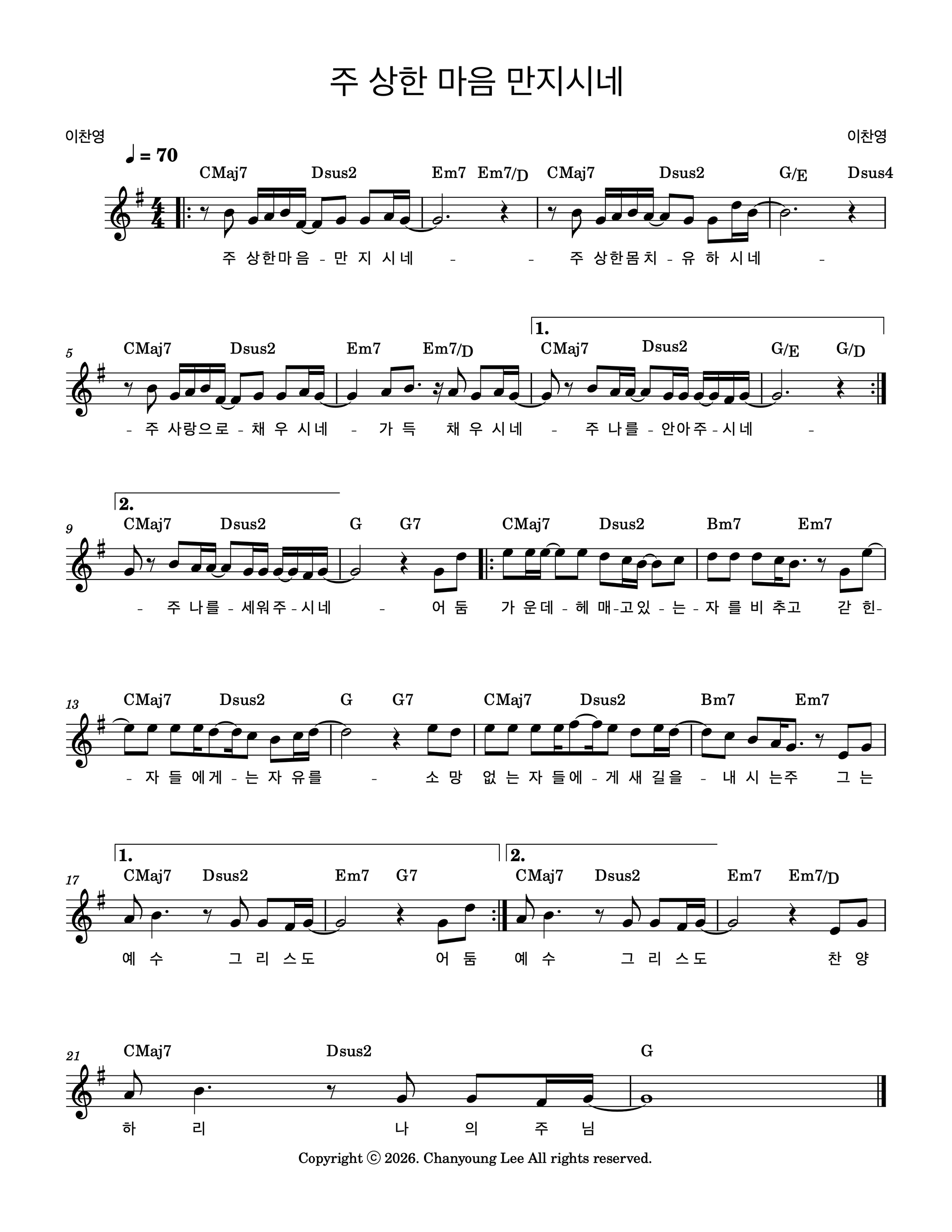 주 상한 마음 만지시네 주 상한 몸 치유하시네